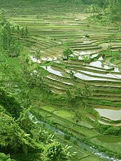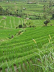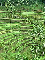 | ウブドの北、工芸ショップが一杯並ぶテガラランにあるのがこのライステラス。バリと言えばこのテガラランのライステラスが紹介されるほどすでに有名で、ここはバリ有数のライステラスが眺められるところです。素敵なカフェも並んでいますので、ティタイムでもいかがですか?ライステラスからの緑の風に吹かれていると、きっと時のたつのも忘れリフレッシュしている自分に気がつかれるでしょう・・・・・ |