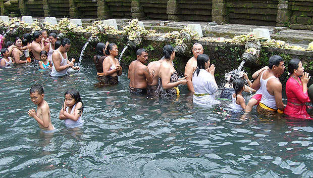 聖なる泉が湧くパワースポット・ティルタウンプル寺院での沐浴(マンディ)にご案内させて頂きます。沐浴は、バリ人にとってはムルカットと呼ばれる大切な浄化の儀式で、当社ではお客様にもバリ人と同じようにプジャティと呼ばれるお供えをし、教えに添った方法で沐浴をして頂きます。どうぞティルタウンプル寺院での沐浴で何かをお感じになって頂ければと思います。